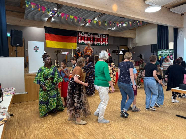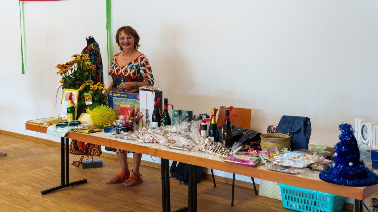 Ein Blumen- und Bücherflohmarkt sowie ein Angebot afrikanischer Kleider und Taschen, genäht von den Schülern unserer Nähkurse in Kenia, rundeten das Angebot ab.